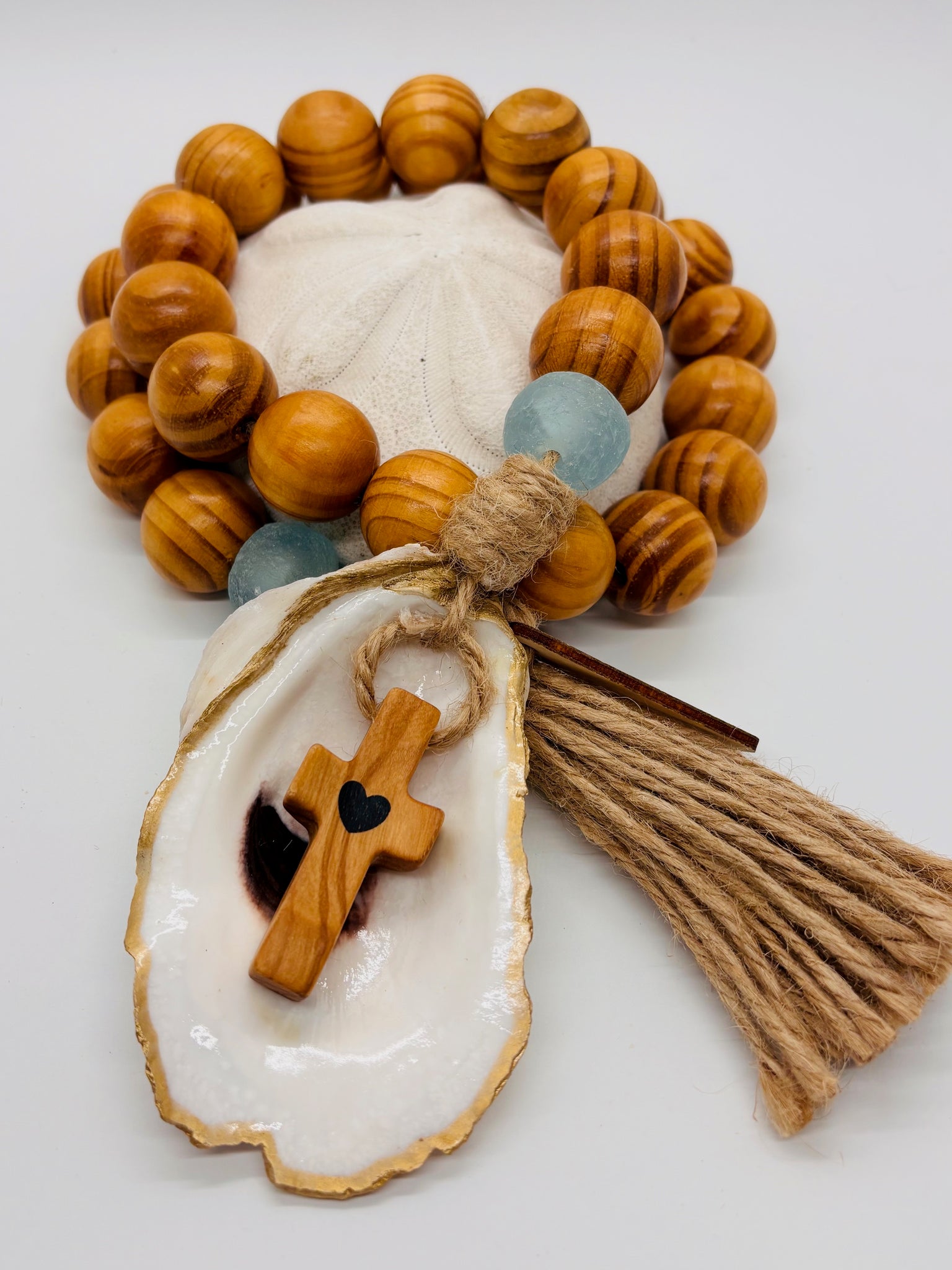 The Sea Cross can be added on to any of our pieces. Perfect as a meaningful gift, a display of faith, or a cherished piece of coastal decor. Every shell is naturally unique, making each creation one-of-a-kind - a reflection of life's simple grace by the sea.